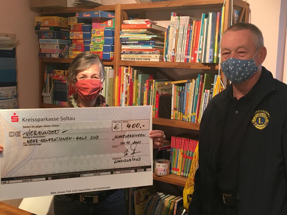 Außer ihren Club-Beiträgen und eigenen Spenden stiften die Schneverdinger-Lions etwa die Erlöse aus Getränkeverkäufen während des Heideblütenfests und des Weihnachtsmarkts oder aus dem mittlerweile in einer Auflage von 6.000 Stück erscheinenden Weihnachtskalender für soziale Projekte. Da wurden die Fördervereine der Schneverdinger Schulen genauso gefördert wie der Spielplatz der Kita in Lünzen oder die Schneverdinger Tafel und die gemeinnützigen Pflegedienste. Unterstützt wird der alljährliche Heidekutschen-Ausflug der Bewohner des Tannenhofes und auch das CVJM-Jugendlager in Offendorf. Zu seinen Jubiläen hat der Club der Stadt Schneverdingen besondere „Vermächtnisse“ gespendet, so den Bohlensteg durchs Möhrer Moor, die Sonnenuhr am Höpen oder das Kneippbecken im Walter-Peters-Park.